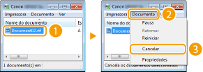 Cancelar a partir de uma aplicaçãoNalgumas aplicações, aparece um ecrã como o que é mostrado abaixo. Pode cancelar a impressão clicando em [Cancelar].