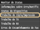 Quando <Exibir Log do Trabalho> está definido como <Desativado>, não é possível verificar os registos do trabalho de impressão. Exibir Log do Trabalho