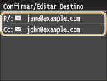 Pode selecionar um destino de entre os últimos três destinos utilizados. Quando especifica um destino utilizado anteriormente, a máquina configura também as mesmas definições de digitalização (por exemplo, a densidade) que utilizou da última vez que enviou documentos para o destino em questão.