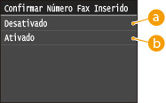 Pode configurar a máquina para solicitar aos utilizadores que introduzam duas vezes o número de fax quando o número é introduzido utilizando as teclas numéricas. Dessa forma, pode reduzir o risco de enviar um fax para o número errado devido a erros de introdução.