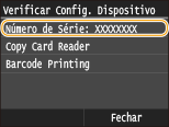 e toque em <Status do Dispositivo> <Número de Série>. |