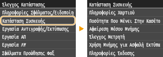 Για να αλλάξετε την οθόνη που εμφανίζεται αυτόματα όταν η συσκευή παραμένει ανενεργή για ένα συγκεκριμένο χρονικό διάστημα: Λειτουργία Μετά από Αυτόματη Επαναφορά
