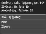 Όταν εμφανιστεί η οθόνη σύνδεσης, ακολουθήστε την παρακάτω διαδικασία για να εισαγάγετε τον κωδικό τμήματος και το ΡΙΝ.