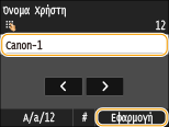 Εισαγάγετε το όνομα χρήστη χρησιμοποιώντας τα αριθμητικά πλήκτρα και πατήστε <Εφαρμογή>.