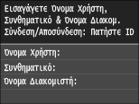 Πιστοποίηση διακομιστή LDAP), η οθόνη σύνδεσης για εξουσιοδοτημένη αποστολή θα εμφανίζεται κάθε φορά που χρησιμοποιείτε τη λειτουργία φαξ ή σάρωσης.