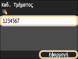 Εισαγάγετε τον κωδικό χρησιμοποιώντας τα αριθμητικά πλήκτρα και πατήστε <Εφαρμογή>.