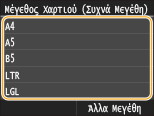 Εάν το μέγεθος του χαρτιού που έχετε τοποθετήσει δεν εμφανίζεται, πατήστε <Άλλα Μεγέθη>.