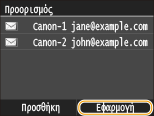 Επαναλάβετε τα βήματα 7 έως 9 έως ότου καταχωρίσετε όλους τους προορισμούς που θέλετε, και στη συνέχεια αγγίξτε <Εφαρμογή>.