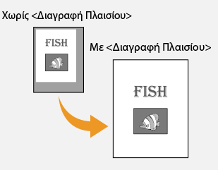 Όταν αντιγράφετε έγγραφα που έχουν μικρότερο μέγεθος από το μέγεθος χαρτιού εξόδου, ενδέχεται να εμφανιστούν γραμμές πλαισίου στις άκρες του αντιγράφου. Όταν αντιγράφετε αντικριστές σελίδες ενός χοντρού βιβλίου, ενδέχεται να εμφανιστούν μαύρα περιγράμματα. Με την επιλογή <Διαγραφή Πλαισίου> μπορείτε να διαγράψετε αυτές τις γραμμές πλαισίου και τα μαύρα περιγράμματα.