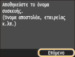 Εισαγάγετε το όνομα μονάδας (π.χ. ένα όνομα χρήστη ή όνομα εταιρείας) χρησιμοποιώντας τα αριθμητικά πλήκτρα και αγγίξτε <Εφαρμογή>.