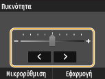 Μπορείτε να κάνετε όλη την εργασία εκτύπωσης πιο σκούρα χρησιμοποιώντας την επιλογή <Πυκνότητα Εκτυπωτή> στο <Ρύθμιση/Συντήρηση>. Πυκνότητα Εκτυπωτή