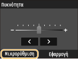 Εάν η ρύθμιση <Εξοικονόμηση Γραφίτη> έχει οριστεί σε <On>, δεν μπορείτε να χρησιμοποιήσετε αυτήν τη λειτουργία προσαρμογής. Εξοικονόμηση Γραφίτη