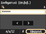 Εισαγάγετε τον κωδικό πρόσβασης χρησιμοποιώντας τα αριθμητικά πλήκτρα και αγγίξτε <Εφαρμογή>.