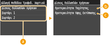 Οι ρυθμίσεις που επισημαίνονται με αστερίσκο (*) είναι διαθέσιμες μόνο όταν είναι τοποθετημένος ο προαιρετικός τροφοδότης χαρτιού (συρτάρι 2).