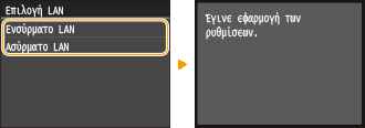 Πατήστε <Ενσύρματο LAN> ή <Ασύρματο LAN>.