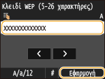 Εισαγάγετε το κλειδί δικτύου χρησιμοποιώντας τα αριθμητικά πλήκτρα και αγγίξτε <Εφαρμογή>.