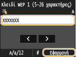 Εισαγάγετε το κλειδί δικτύου χρησιμοποιώντας τα αριθμητικά πλήκτρα και αγγίξτε <Εφαρμογή>.
