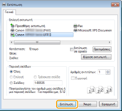 Ο τρόπος εμφάνισης του παραθύρου διαλόγου εκτύπωσης διαφέρει ανάλογα με την εφαρμογή. Για περισσότερες πληροφορίες, ανατρέξτε στο εγχειρίδιο οδηγιών για την εφαρμογή που χρησιμοποιείτε.