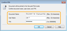 Εισαγάγετε [Document Name] (Όνομα εγγράφου), [User Name] (Όνομα χρήστη) και [PIN] και κάντε κλικ στο [OK].