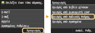 Ορισμός κοινόχρηστου φακέλου ως θέσης αποθήκευσης Καταχώριση προορισμών στο βιβλίο διευθύνσεων από το Remote UI (Απομακρυσμένο περιβάλλον εργασίας) |