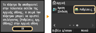 Εάν η οθόνη Αρχική είναι γεμάτη και δεν μπορεί να προστεθεί το πλήκτρο, χρησιμοποιήστε το <Ρυθμίσεις Αρχ. Οθόνης> για να διαγράψετε καταχωρισμένα πλήκτρα ή κενές θέσεις.