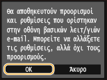 Εάν επιλέξετε <Ναι>, θα εμφανιστεί ένα μήνυμα. Διαβάστε το μήνυμα και έπειτα αγγίξτε <OK>. Ο συνδυασμός των καταχωρισμένων προστίθεται στην οθόνη Αρχική ως πλήκτρο συντόμευσης.