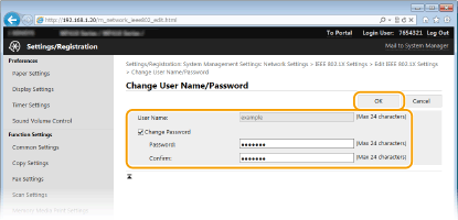 Επιλέξτε το πλαίσιο ελέγχου [Use IEEE 802.1X], εισαγάγετε το όνομα σύνδεσης στο πλαίσιο κειμένου [Login Name] και καθορίστε τις απαιτούμενες ρυθμίσεις.