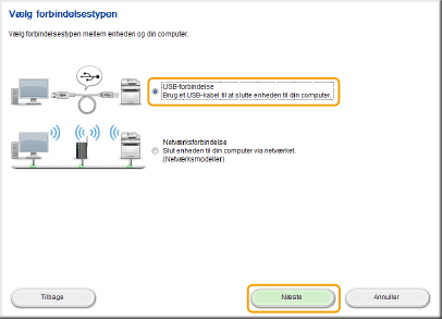 Vælg [USB-forbindelse], selv ved tilslutning vha. et netværk.