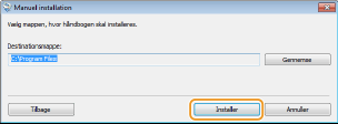 Hvis du vil ændre installationsplaceringen, skal du klikke på [Gennemse] og angive den ønskede placering.
