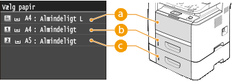 Angiv den papirkilde, der indeholder det papir, du vil bruge til udskrivning af kopier.