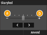 Du kan justere det kopierede billedes skarphed. Øg skarpheden for at gøre sløret tekst og slørede linjer mere skarpe, eller mindsk skarpheden for at forbedre udseendet af fotos fra et tidsskrift.