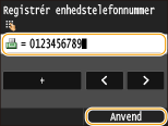 Angiv faxnummeret ved hjælp af taltasterne, og tryk på <Anvend>.