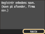 Registrer faxnummeret og maskinens enhedsnavn. Disse oplysninger er trykt øverst på alle de sider, der sendes fra maskinen.