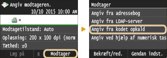 Vælg <Modtager>  <Angiv fra kodet opkald>.