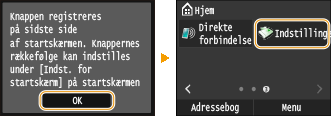 Hvis du vælger <Ja>, vises en meddelelse. Kontroller meddelelsen, og tryk derefter på <OK>. Den registrerede indstillingskombination tilføjes til Hjem-skærmen som en genvejsknap.