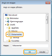 Gem oplysningerne i adressebogen i en mappe, som f.eks. mappen [Dokumenter], hvor du har skriveadgang.