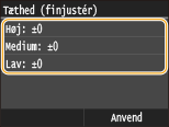 Når <Tonerbesparelse> er angivet til <Til>, kan du ikke bruge denne justeringsfunktion. Tonerbesparelse