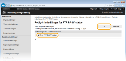 Klik på [Rediger] i [Indstillinger for FTP PASV-status].