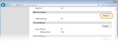 Hvis IP-adressen for WINS-serveren er hentet fra en DHCP-server, vil den hentede IP-adresse have forrang i forhold til den IP-adresse, der er angivet i tekstfeltet [WINS-serveradresse].