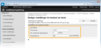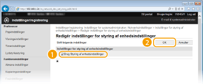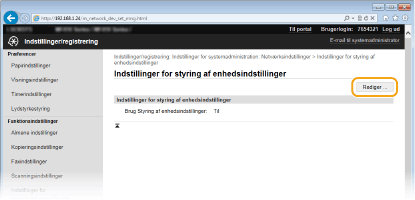 Klik på [Netværksindstillinger]  [Indstillinger for styring af enhedsindstillinger].