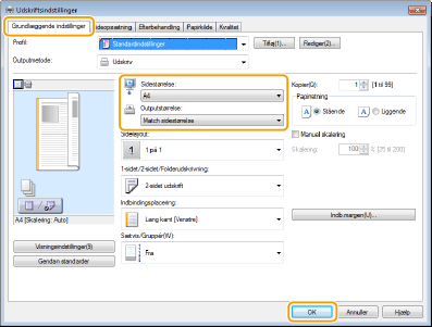 Vælg papirformatet i [Outputstørrelse]