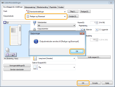 Vælg [Rediger og Eksempel] i [Outputmetode].