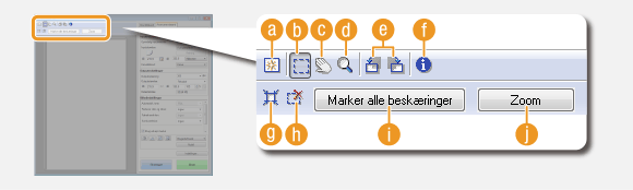 Hvis du placerer dokumentet på glaspladen og klikker på [Eksempel], får du vist et eksempelbillede. Du kan angive det område, du vil scanne, og kontrollere effekten af billedjusteringerne på eksempelbilledet.