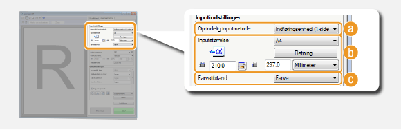 Hvis du vælger [Indføringsenhed (2-sidet)] under [Oprindelig inputmetode] (