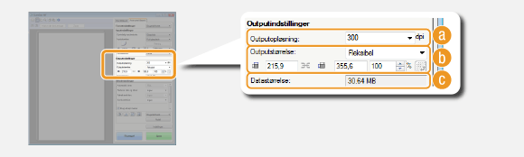 Viser billedets datastørrelse, når det scannes med den angivne [Outputopløsning] og [Outputstørrelse].