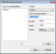 Hvis du vælger [Tilføj/slet], kan du tilføje nye indstillinger for outputstørrelse og slette de tilføjede størrelser.