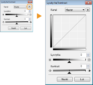 Justerer billedets lysstyrke og kontrast (forskellen mellem de lyse og mørke dele). Klik