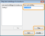Indtast et navn i [Navn på indstilling], og klik på [Tilføj]