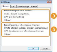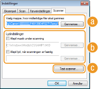 Klik på [Indstillinger] for at konfigurere forskellige indstillinger, herunder betjening under scanning.