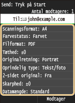 Hvis du vil sende e-mails direkte fra maskinen, skal du gøre dig nogle forberedelser på forhånd, herunder angivelse af indstillinger for e-mailserveren. Konfiguration af scanningsindstillinger (afsendelse af e-mail, afsendelse og modtagelse af I-faxer)